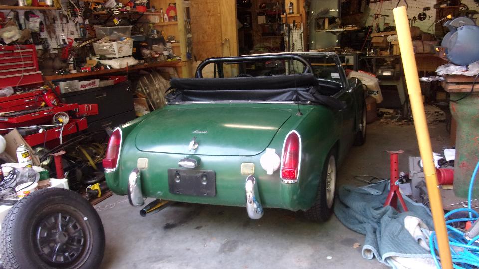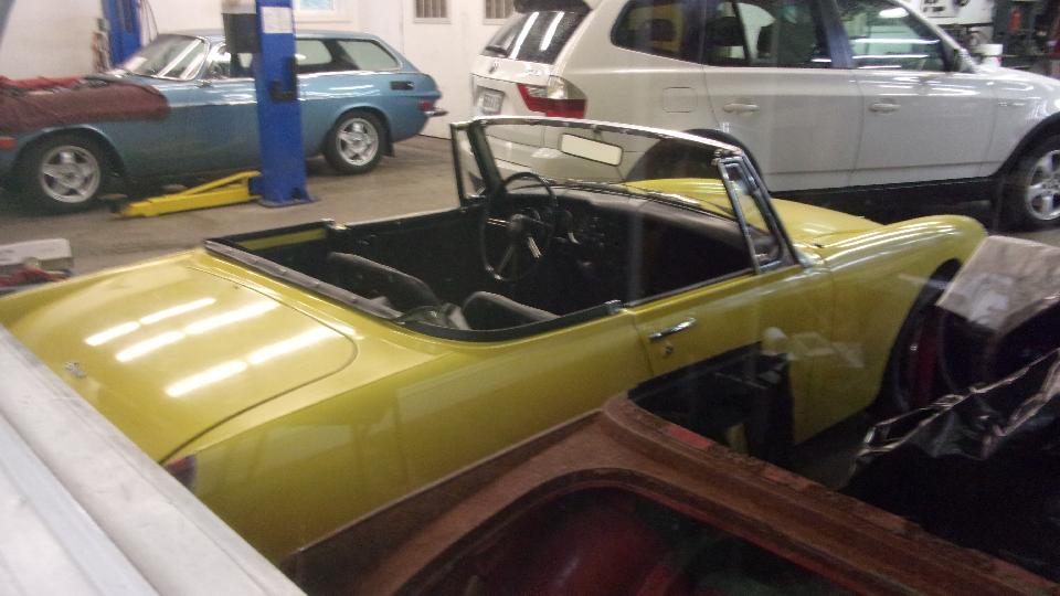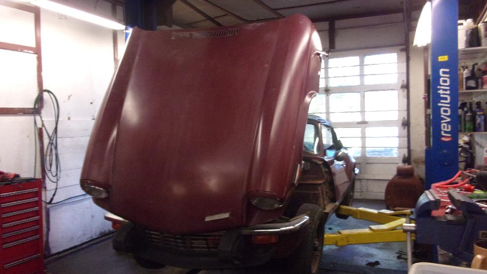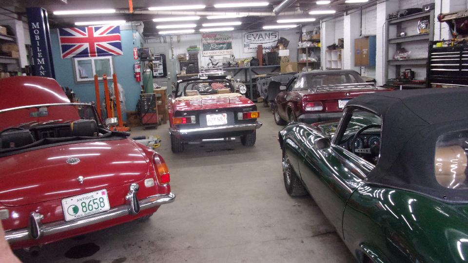 Last stop for the day would be New England Imports in Portland, ME. This is a family business with father and two sons. They work on almost any imported cars, but the father in particular likes the vintage British stuff. In the shop today were a nice AH Sprite (or maybe it was a MG Midget masquerading as a Sprite), another Midget for parts, and a Volvo P1800 sport wagon (shooting brake to the Brits). In the back was a MG Midget in early stages of restoration. 25 years in service leaves them with lots of experience in vintage British cars.