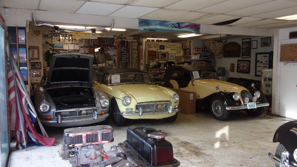 Then off to visit Brit-Tek Ltd in Deerfield, NH. The good news is, we got to meet the owner. The bad news is, he has retired and the business has been deactivated. So we will move him from the Shops list to our Friends list. We had time for a look as his daily driver MGB GT with Weber carburetor, No fuel vapor recovery, no anti-run-on valve, and no positive crankcase ventilation, but it still runs well.