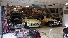 We would not have been calling a business phone on Saturday evening, but the first line on our Planning list was Tom Lange at MG T Repair in Bar Harbor, ME. I thought we would likely get a message machine, but Tom answered the phone and said, "Come on over", so we did. Must have taken 2-1/2 hours to run from Calais to Bar Harbor. Arriving about 8-pm, Tom and his son were greeting us in the dark with a flashlight. Tom is an MG T-type enthusiast, so his daily driver TD was close at hand. The MGB GT belongs to his son.