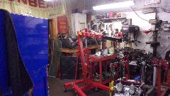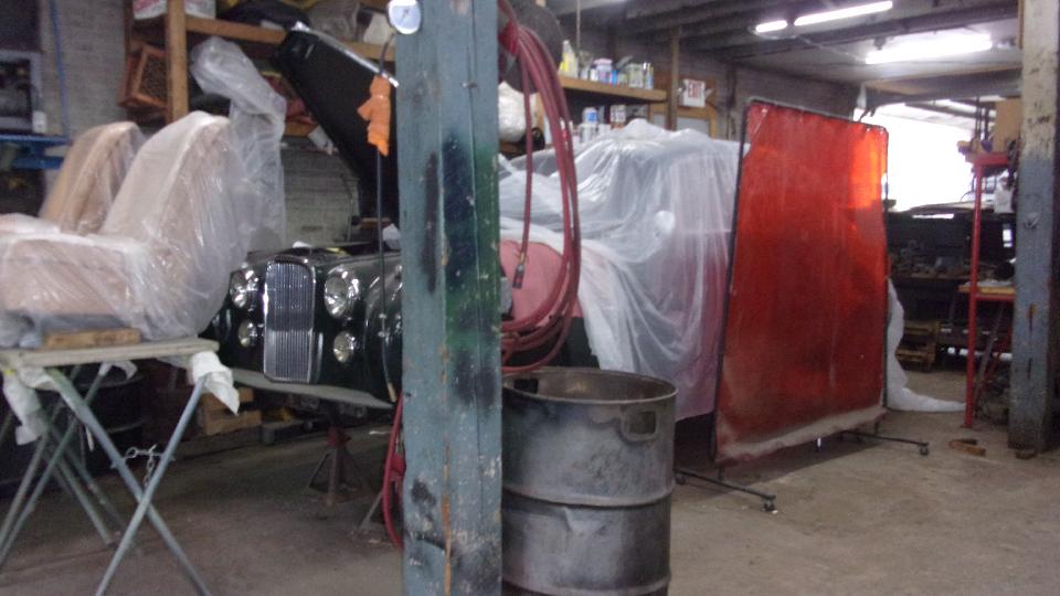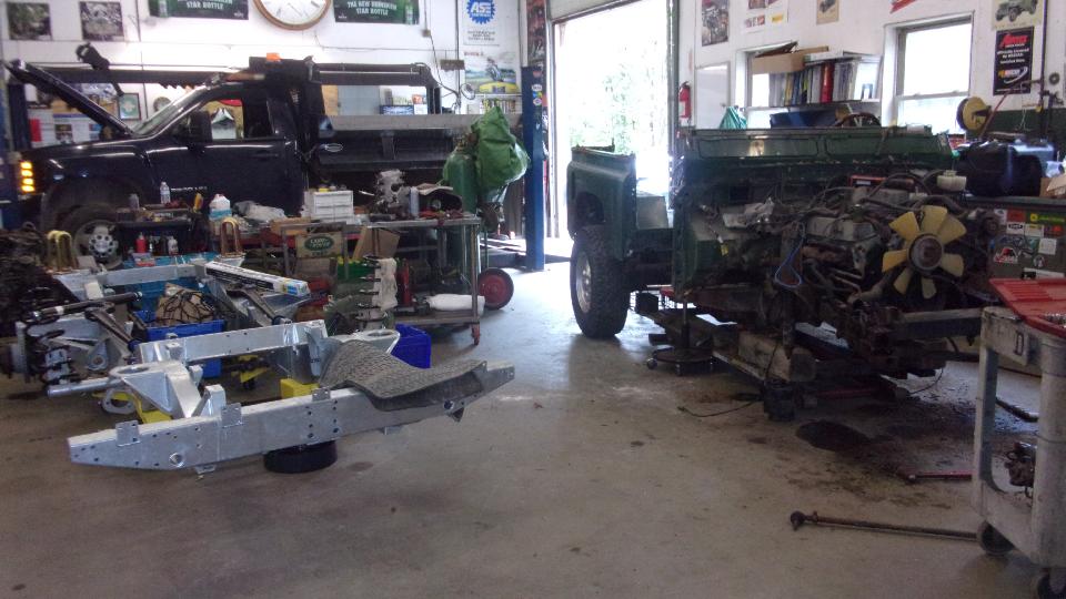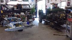 Specialty here is service and restoration of Land Rovers, but they do work on pretty much any vintage British cars, or sometimes almost anything else in need (like the dunp truck in the back bay). The Land Rover on the right is about to be rebuilt on the brand new frame on the left.