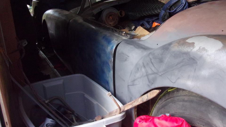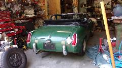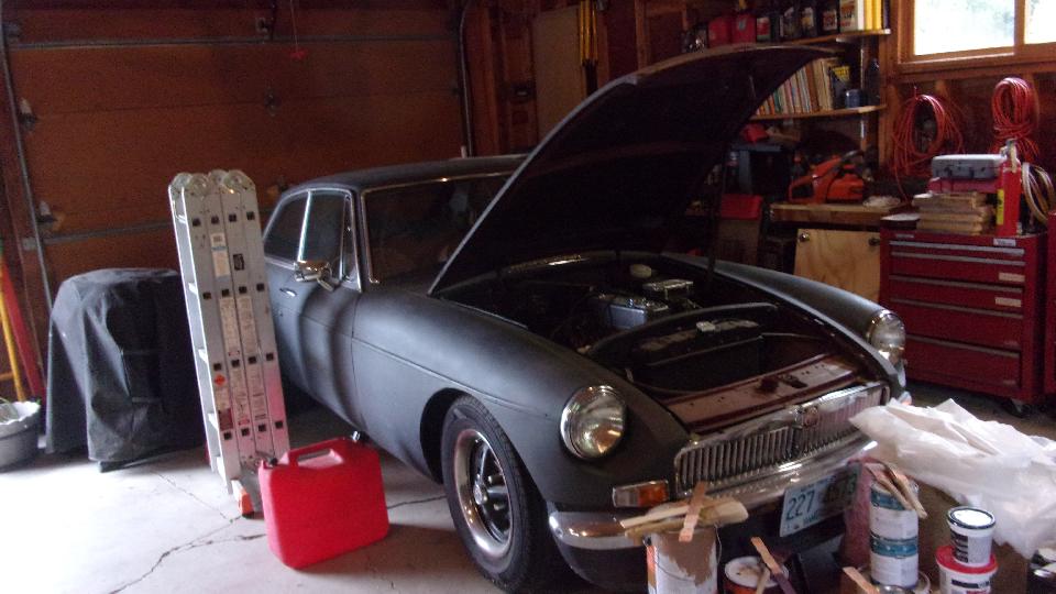 The MGA had a lot of bare but clean sheet metal as purchased, so it got a coat of primer paint before being loaded for the trip back to New Hampshire.