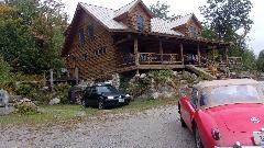 Then we were off to visit a friend Rick Cabot who has a farm in Sangerville, a rather remote part of central Maine. Most of the roads up here are paved, until we got close to our destination and had to crawl up some gravel roads to get there. But the treat was worth the drive. When was the last time you knew someone who built their own "log cabin"? Well, not your typical log cabin. The buildings you will see in these pictures were built from hewing the wood from trees on their own property, beginning with the house. All I can say is, wow.