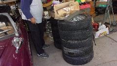 Midget is a later model with disc brakes, but is sporting a Bug-eye front clip. Interesting seeing a Bug-eye Sprite with roll-up windows and a boot lid. And there was a nice MGB. Alan moved here a few years ago from Rhode Island, and has just recently been cleaning out his stuff from RI trucking it up here to NH. Yesterday he had a temporary distraction when someone else called him to haul away some MGA parts from their place when they were moving out, in lieu of tossing the stuff in the trash. So we spent some time identifying parts to see what he actually had in hand.