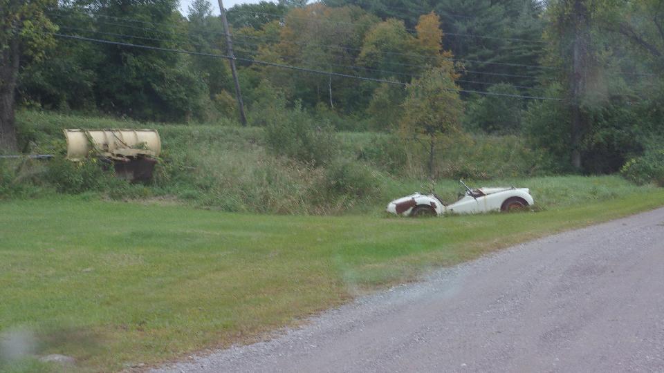 After the club meeting we had an assistance request from one of the members. Right on our planned path anyway, so we cruised an hour east for a visit with Eric Harry in Wilmot, NS to check out his Jensen Healey. He had the car for three years, but never had it running. Reportedly it had not run for several years before that. Since the engine would turn, this didn't look too difficult.