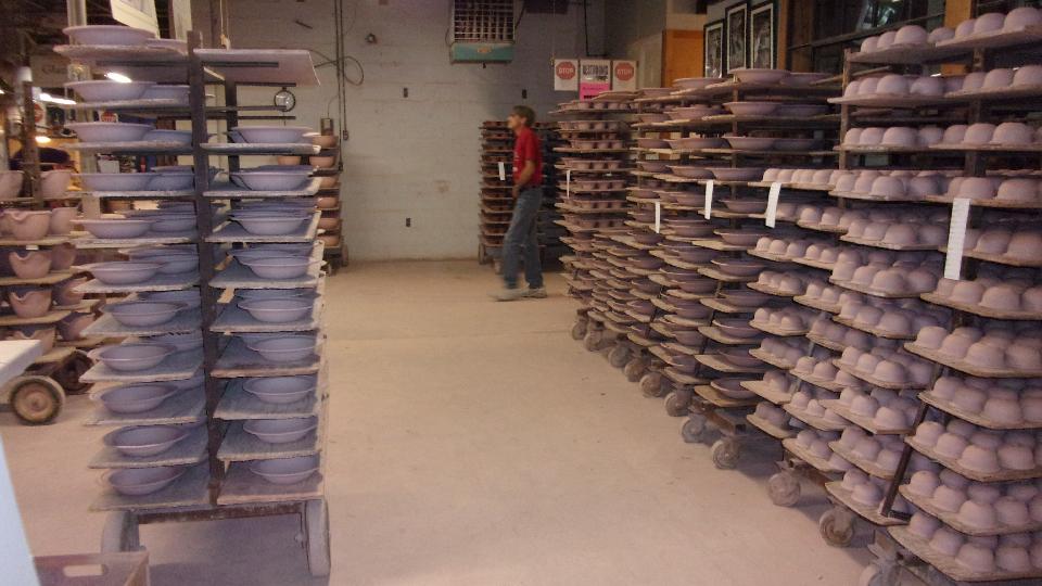 This time there were two clubs involved, British Cars of New Hampshire, and Connecticut MG Club. Most of the cars were from BCoNH, but we had visited that club before, to this time we hooked up with two MGBs from CtMGC. First stop was intended to be the Hemmings Motor News publishing offices and car museum in Bennington, VT, but they were slightly derailed by road construction and begged off. Just as well, because we have visited there before (see June 14, 2014). I think the women got second choice this time when we wandered a few blocks away to visit Bennington Potters. While they were shopping up front the guys were checking the pottery factory out back.
