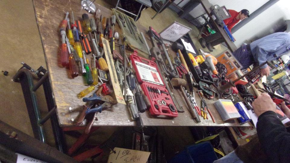 Set the alarm for something that begins with a "4"? Gotta be kidding. Get up and haul out to be at the Swap Meet by 5:30 (yes, AM) to open the doors for vendors to log in and set up shop. Police the doors, check log-in sheets, and watch the treasure roll in. Quarter to eight, begin letting the shoppers in a little early (so they don't have to standout on the cold). Then business was brisk as the customers are savvy about shopping early before the best treasure is gone.