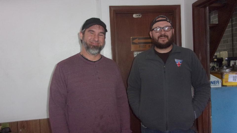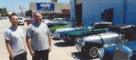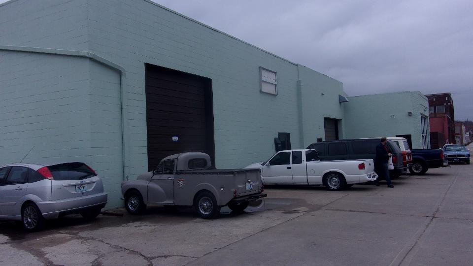 As planned, we were rampaging through St Louis, MO area today, visiting 7 shops and 1 friend with an MGA Coupe. First up was Brooklands Restorations in Overland, MO who do restoration work on classic European cars (including pretty much anything British). Front of building, front lot, back of building. Meet the cheery faces, Christian Sora and Adam Key. My camera was not wide enough angle, but pretty sure at least nine service doors front and back.