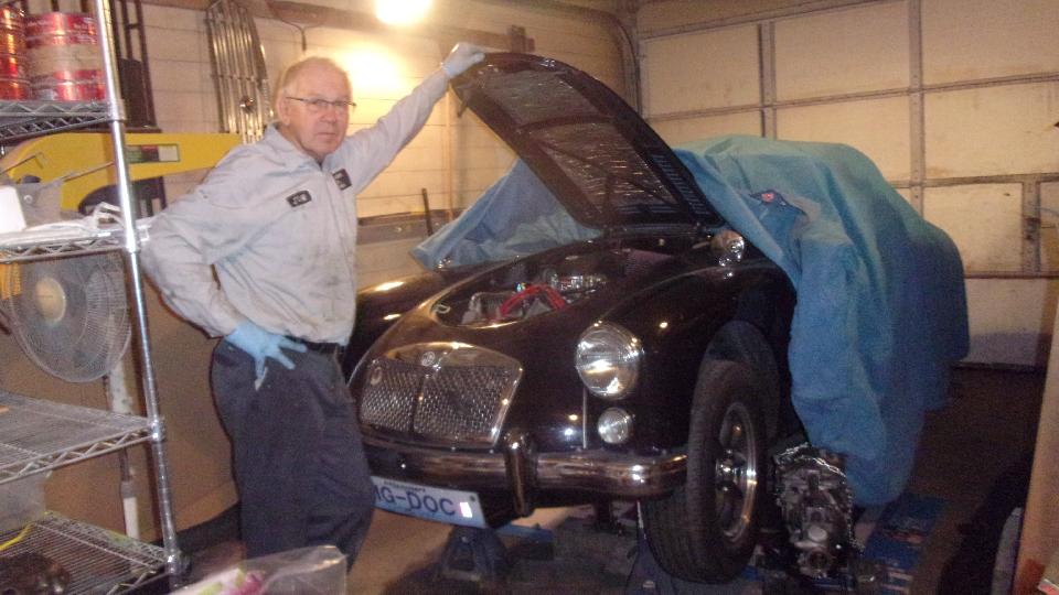 So meet the owner of All British Car Repair, John Mangles, "The MG Doc", and his pride and joy, the MGA with V8 engine, converted around 2004.