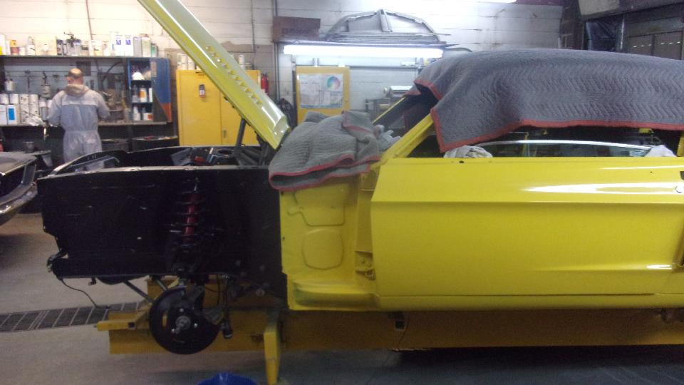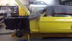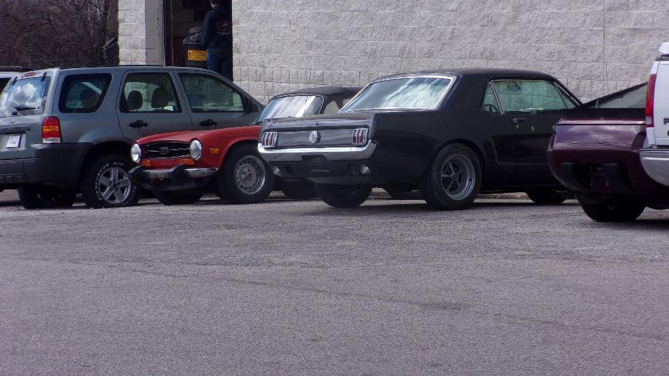 Then we were off to visit Custom Auto Center in Maryland Heights, MO. They do great body work and classic car restoration. They seem to be heavy into Mustangs today, but do lots of other vintage cars (including vintage British cars). There was a '55 T-bird on the hoist, and a rare Shelby just out of the paint booth in final assembly.
