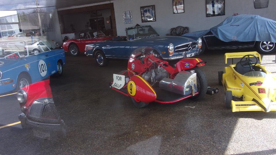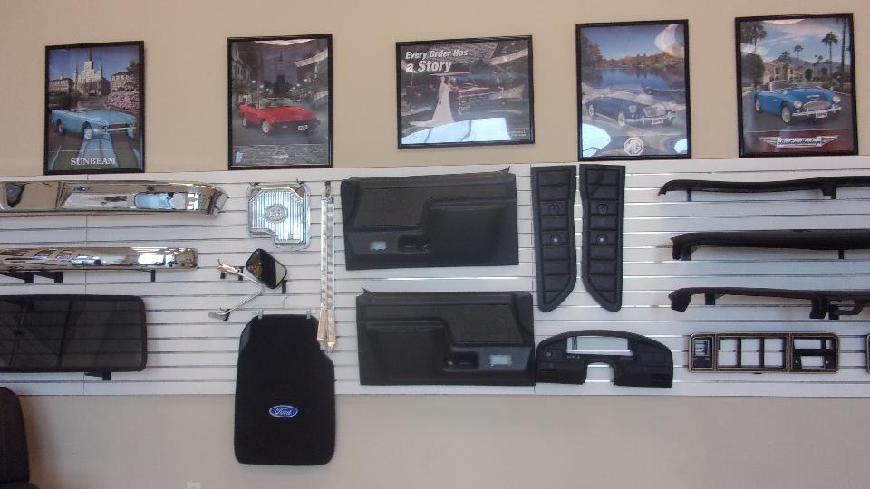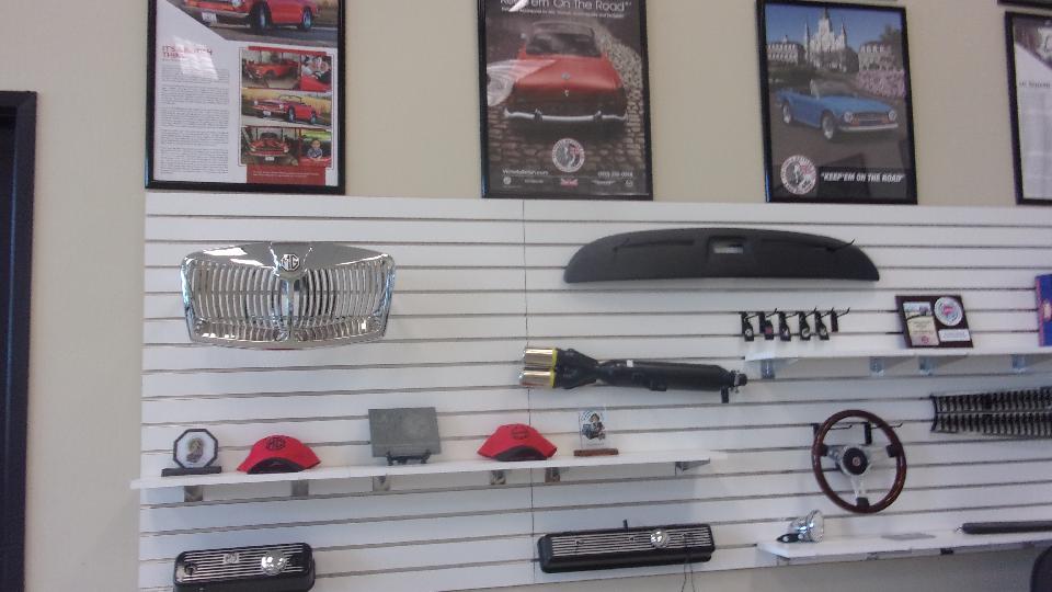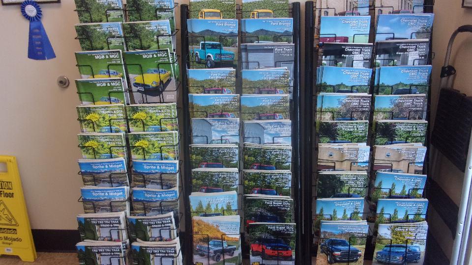 I think they missed a good bet not putting the V.B. sign outside. Plenty of evidence inside. That's an MGA grille hanging on the wall with lots of accessory parts. One third of the catalog rack is for the vintage British car stuff, the rest for the larger business of truck parts. I think they have discontinued Datsun Z-car and Mazda RX7 parts.