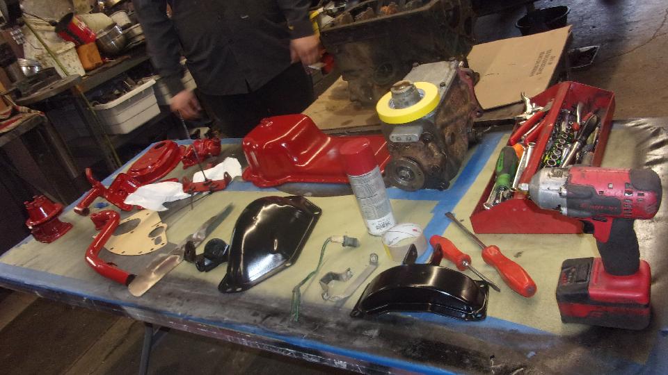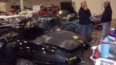 In the middle was the MGA going for full concours show car restoration. Just for fun, see how many different cars you can identify from the parts sitting on the table.