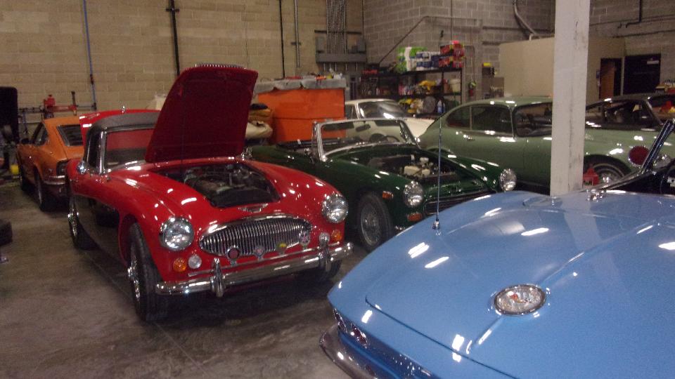 A short walk around outside gives a hint of how many vintage British cars may be here. Across the parking lot is another building just for storage of more cars.