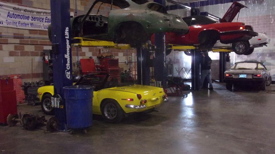 Next up was Foreign Car Enterprise in Kansas City, MO. There was a TR6 in to "get it running" after being dormant for a while. The AH-3000 in back was in for full restoration (was a rusted mess to begin with).