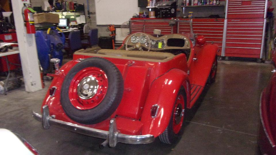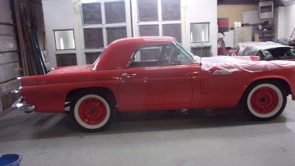 The MG Midget is just finishing a ground-up restoration at great expense. I was just six when that '55 T-Bird rolled out the door. The TR3 in late model Jaguar green (2-pack and clear coat) with tan interior is a concours car to drool over.
