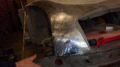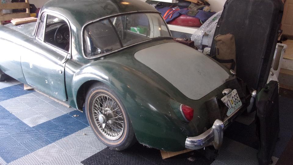 had moved. We made another call because we were actually running a few hours early (which never happens). In short order we stopped to visit Glen Fraska in Weldon Springs, MO (previously St Charles, MO). We missed him when he was busy in June 2015, finally caught him now. He has an interesting MGA Coupe the used to belong to his father. He drives it regularly to keep it in decent running condition as he is slowly fixing it up with an eye toward full restoration in the near future. The small mud guards on the front fenders seem to have helped protect the sills.