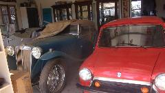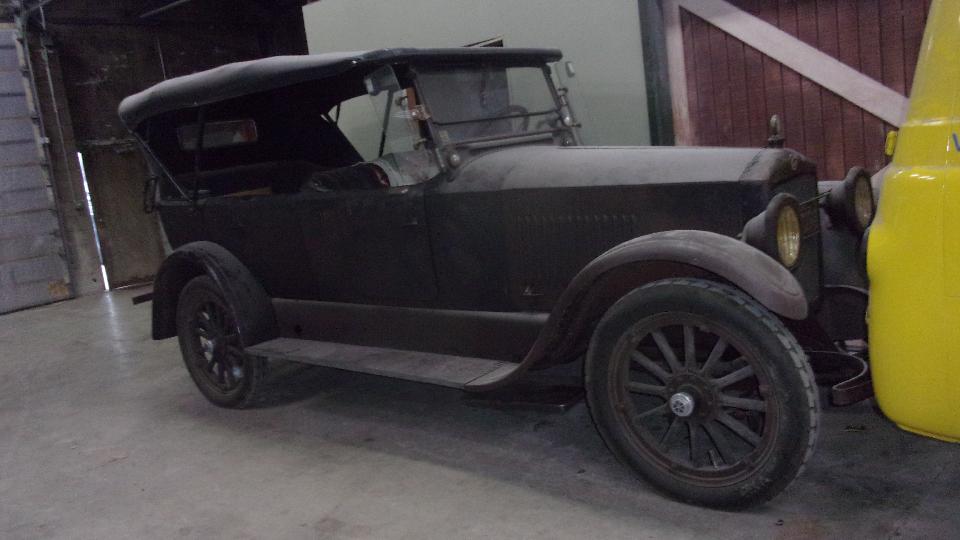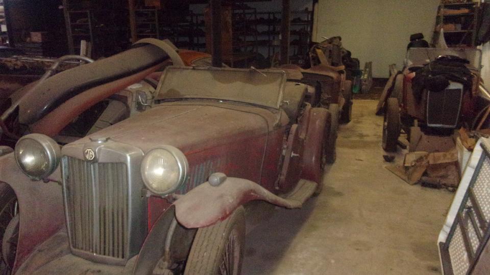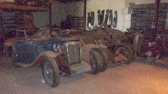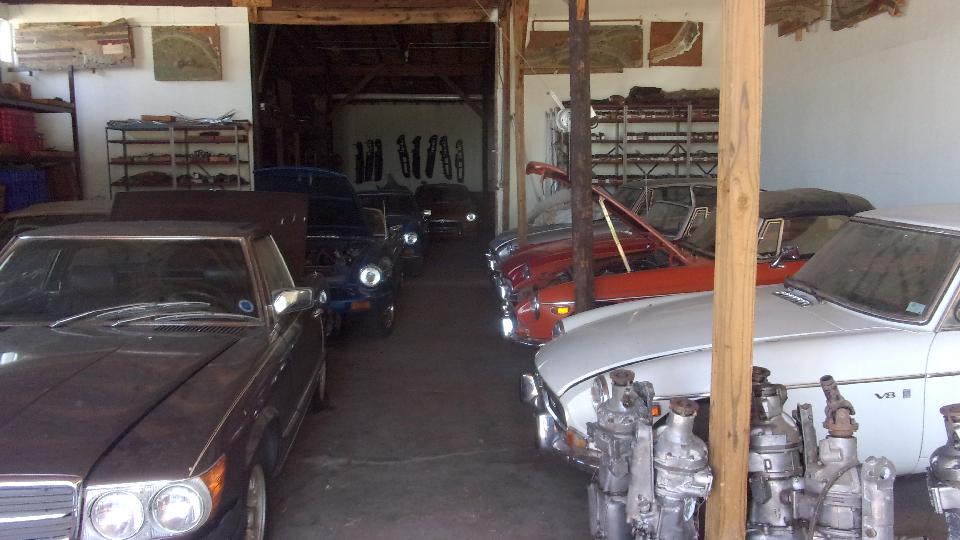 The BGT is waiting for paint. The E-type covered in dust may be under mechanic's lien due to not being able to contact the owner for a long time. The American iron from 1926 spent 12 years on the road followed by 80 years in storage, mostly original, just the rag top and a seat cushion have been refreshed once.
