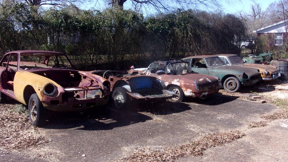 There is a rebuilt body tub reserved for one of the older cars. Back outside more MGs, more likely parts than projects I suppose.