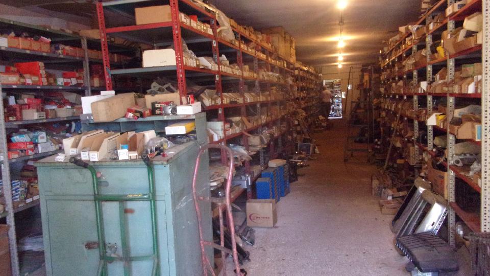Finally into the long building up front, it is filled with many isles with floor to ceiling shelving loaded with "vintage" new parts, tons of the stuff. Right there at my feet were a bunch of MGA restoration panels.