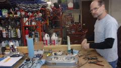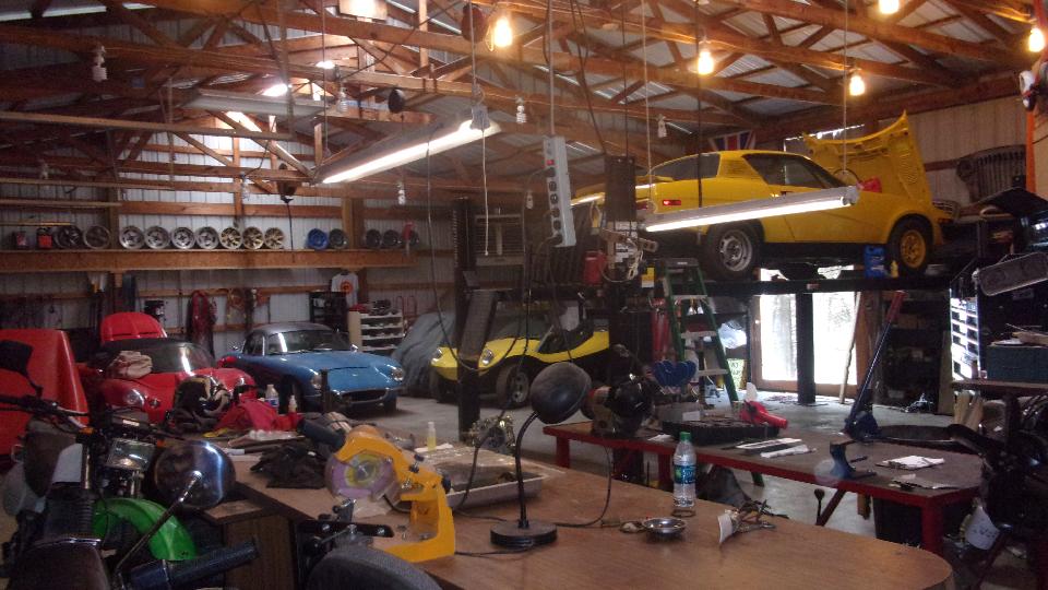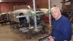 We had no street address or box number, but had narrowed it down to a two mile stretch of road near Ava, MO (or Squires, MO depending on who you ask). Arrived about 6-pm, with about 50 percent expectation of finding our rural route objective with no box number, and 50 percent expectation of anyone being there if we found it. Got lucky and found the owner walking his dogs, and he graciously opened the shop for a tour. Meet Jon Thompson of Sports Car Specialties in Squires, MO.