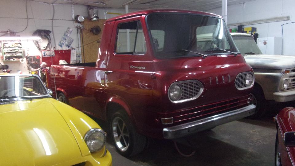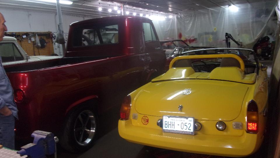 Then across town to visit Ben McCarty also in Tulsa, OK. He has two businesses under the name Automotive Interior Designs & Restorations. The car interior business has been rousted out of its prior digs and is currently looking for a new shop space. The restoration business (different location) is still doing well. The yellow MGS is Ben's daily driver (when it's not raining). The early 60's Econoline truck tickles a fond spot in my heart, as I used to own a '63 Ford Falcon window van (1972-1974).