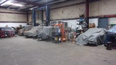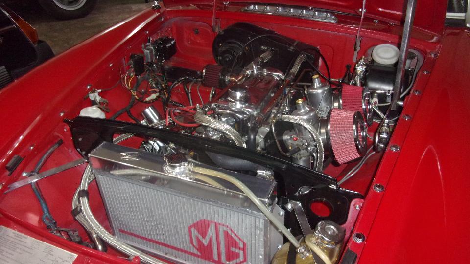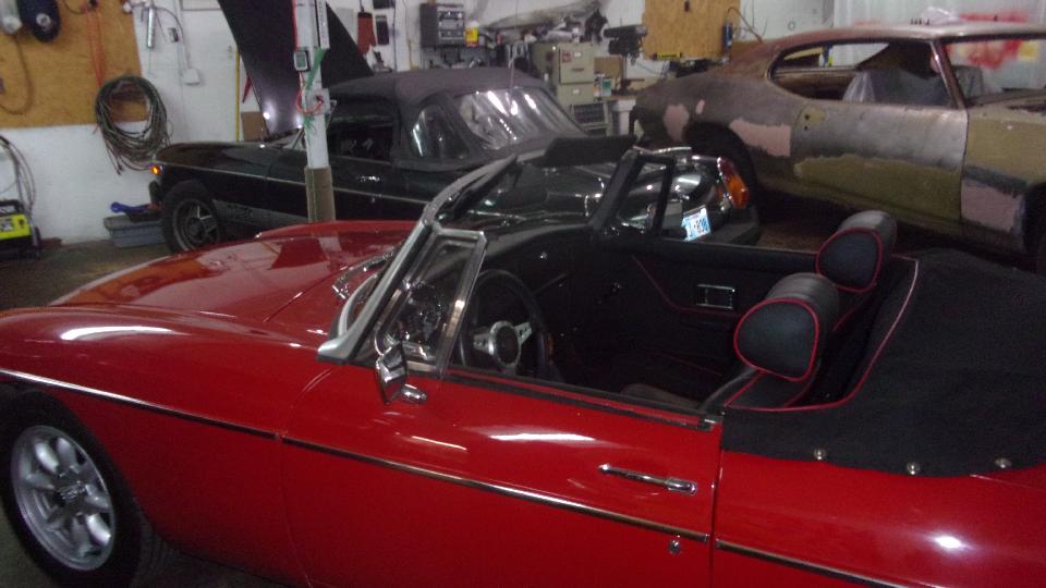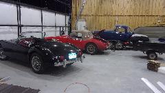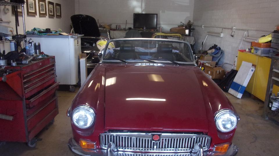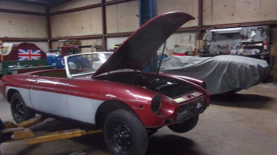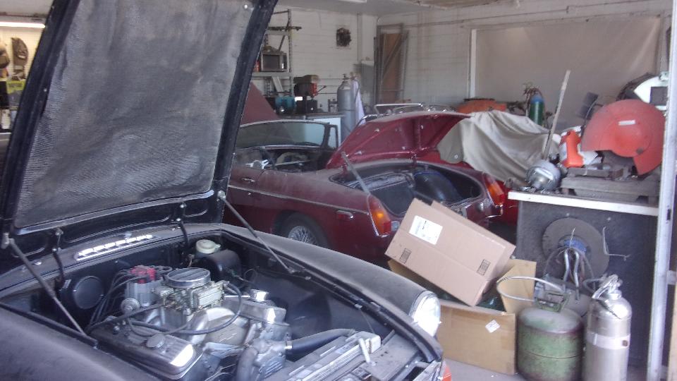 The red and black MGB's are customer cars. The red one in particular has a few personal touches, including a lot of bling under the bonnet. The cars ouside are mostly waiting restoration, likely not parts cars.
