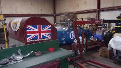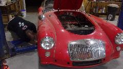 it occupies the entire length of the building, very impressive. They do full restorations on vintage cars, but on further inquiry they say they do not work on foreign cars. Not sure how how this one got on our list, but maybe they did something for one of the local club members in the past.