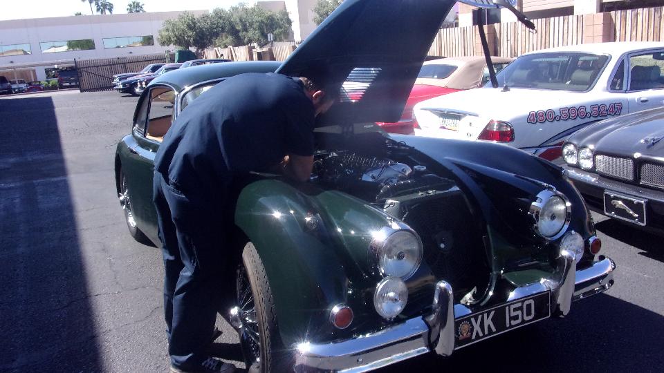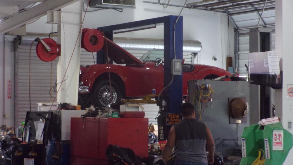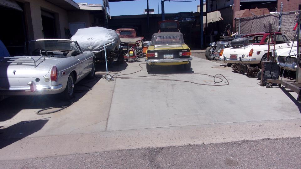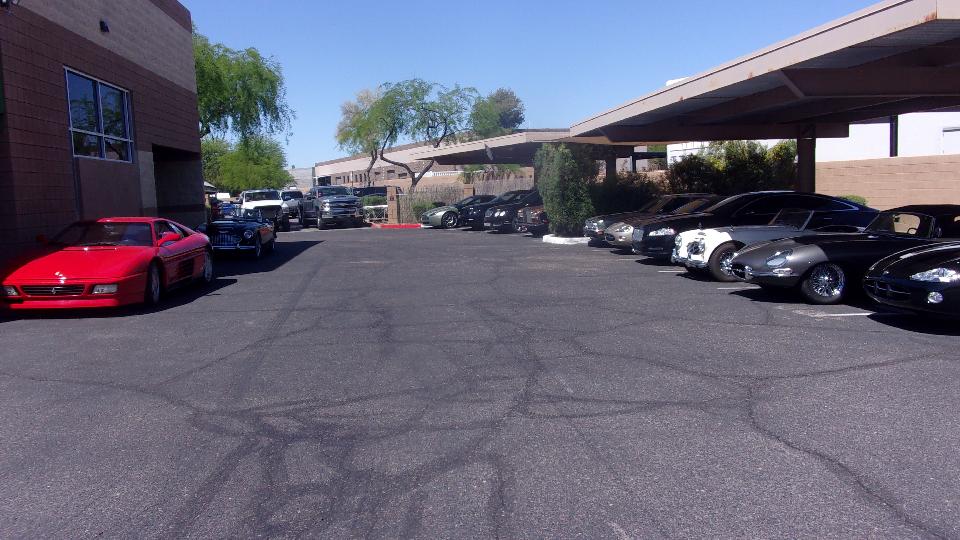 Ten minutes later we were at SportsCar Service Center in Tempe, AZ. Say hello to Tony Ritz, owner and general manager. Nothing British in the shop today, but there was a bit of British waiting its turn outside.