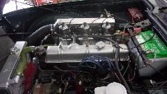 I don't know who owns the Jaguar outside but it was a good place to start. First car on the rack inside was the TR6, a very nice example with some special goodies, fresh interior and tri-pack of SU carburetors, a very nice performance set-up.