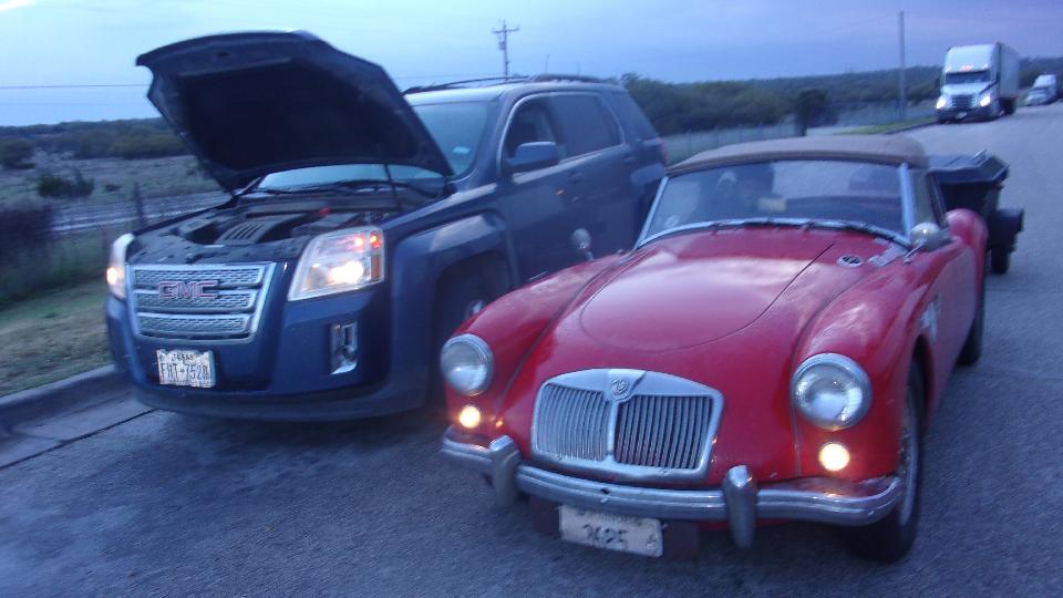 for a few minutes. Getting late in the day, he was heading out to "the barn", meaning going to UPS to ship a package, this one containing a pair of rebuilt carburetors (for an MGB I think). So it was time to go find another WiFi spot and do some route planning and time estimating.
