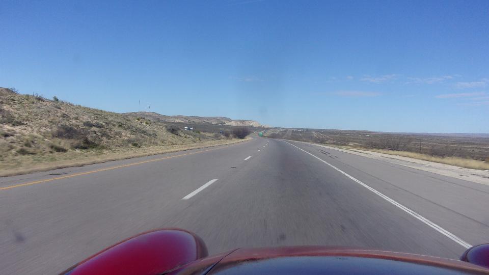 Started the day with a good deed, jump starting a sport ute with a dead battery. Between late last night and mid morning today we burned off a tank of gas and a bit more. Lots of not much out here in western Texas, so being careful to monitor fuel stops so we don't run dry. By late morning we landed in Fort Stockton, TX. Decent place to sit and get some work done while we wait for sundown, so we don't have to drive into the afternoon sun going west. Caught up just about everything, then ran only another half hour west after dark.