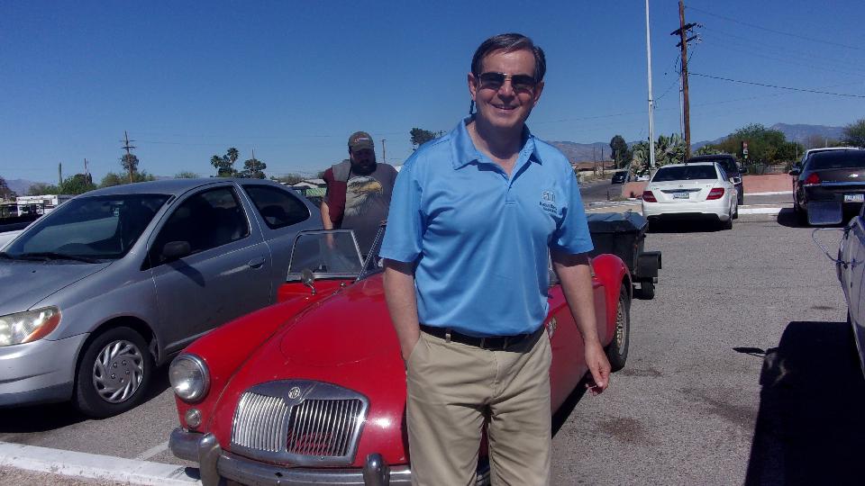 Being rather warm in the southern sun, we had in mind to take most of the rest of the day in an air conditioned WiFi spot, specifically needing to post the CMGC April newsletter on the club web site. But first we would make a couple of phone calls to check on some upcoming personal appointments. This led to a quick change of plans, and we headed west again in late morning. One fuel stop and a little lead foot later we had moved from La Cruces, New Mexico to Tucson, Arizona where we would meet David Sirota at a nifty truck top for a late lunch. We have been chasing this guy for years, having missed him in 2015, and missed him again in 2017. This time I guess he was determined not to miss again, so he made the arrangement for the lunch meeting. He has a 1959 MGA Twin Cam, some other old British cars and old airplanes. Today he was still kind of busy, but at least we got to chat for a while.