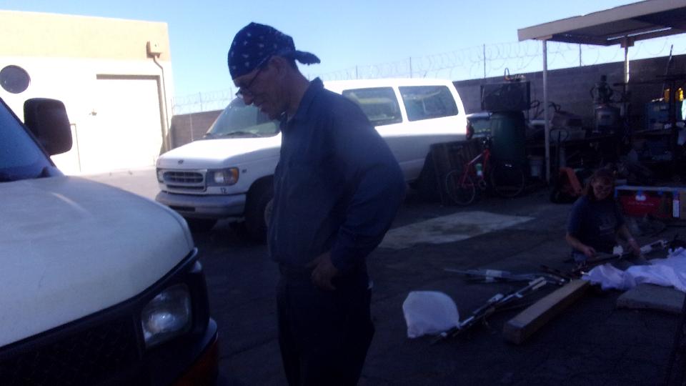 Hoping to be lucky, we made one last stop at Sal’s Auto Works in Peoria, AZ. Open door, but no one at the front counter. I walked through the shop front to back, no one inside, but found the folks out back. Sal wasn't there today, so had a chat with a couple of the techs. This place is a body shop doing collision repair work on newer cars, and the word is they do not work on older cars. Will have a chat with George Bean later to see if this was some of his doing.