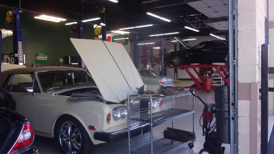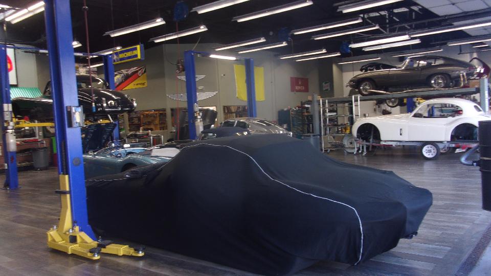Ten large double depth service bays covered the length of the building, this place is huge. They do any minor or major service work. It is also one-stop shopping for a full restoration, as they farm out body and paint work and interiors to nearby cooperative shops. Notice the Jaguar DHC body shell in fresh paint.