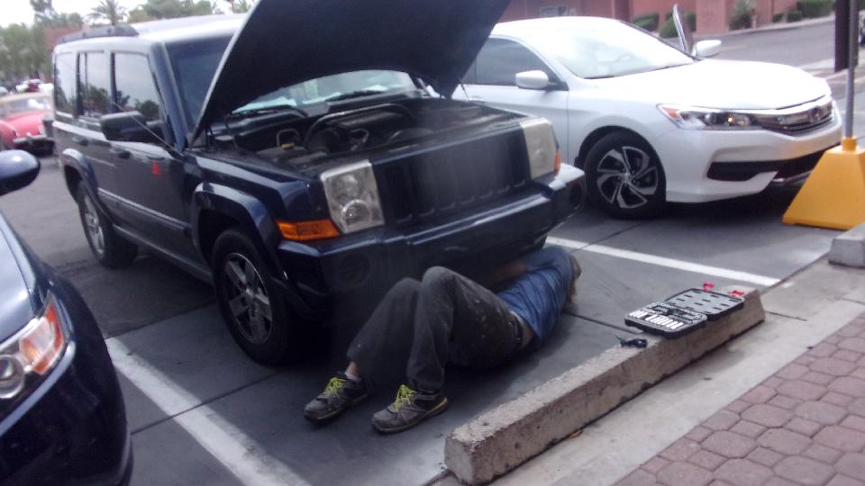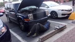 On the way out I had a brief delay to help a Jeep with a dead starter. No click when the key was turned to Start position, although other electrical stuff seemed to work. The idea was to use a jumper wire with alligator clips to apply battery power to the trigger terminal on the starter motor to get it cranking. Unfortunately the guy would have to remove the skid plate for access to the starter, and I didn't have time to hang around, so I left him a long jumper wire, and we were off and running.