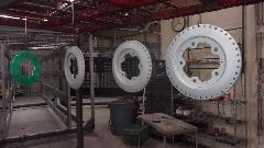 Plenty of eye candy in 17 different shades of black, and some other colors. The discs would be wheel centers for air cooled VWs. Like no one wants to process these parts because those guys are picky, picky, picky.