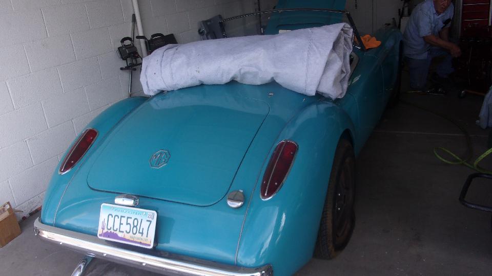 We also had an unexpected walk-in, two women requesting to see the MGA guru. Really? Linda March (and a friend) from Mesa, AZ has an MGA that was in a service shop for two years, was disassembled and had some sheet metal replacement and repairs, was in primer, ready for repaint and reasembly. The shop then decided they didn't have time to finish it (or something like that), and the disassembled car was returned to the owner. She is now looking for someone to paint the car and reassemble it. Not my profession, but I will have to check back later to see how this evolves.