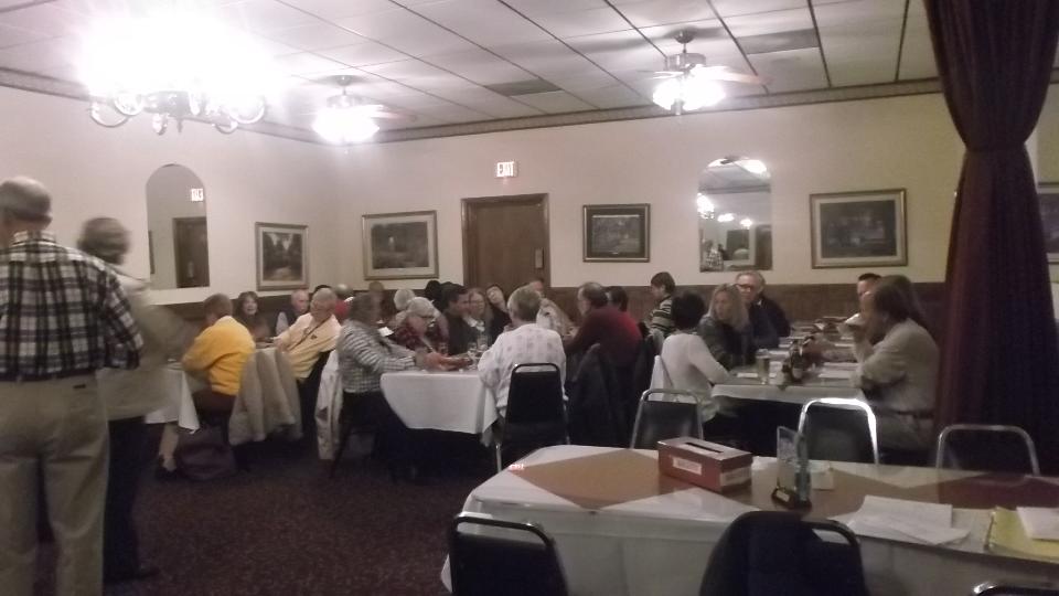 Good dinner, good people, and a good time was had by all. Several people stayed to chat after the business meeting, and we were last to leave (as usual).
