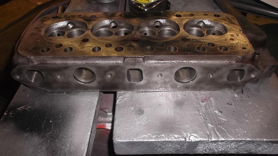 After the carburetors are reworked and reinstalled it still runs bad. At least one cylinder is low on compression, and a few rocker arms are out of adjustment. That fixed, compression is restored to acceptable levels, ignition timing is in the ballpark, and it still runs bad. Time to call it a night, so we expect to be back at it tomorrow.