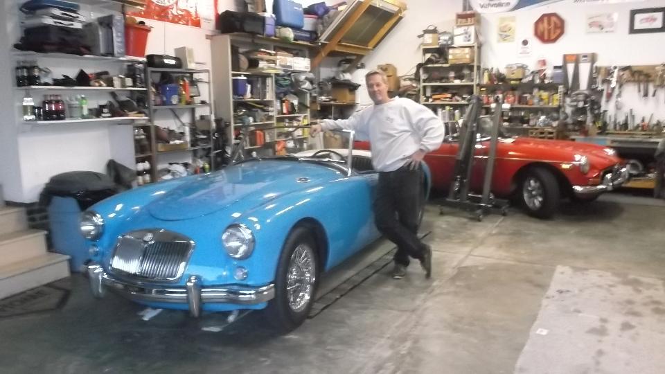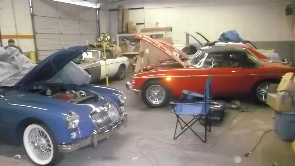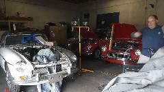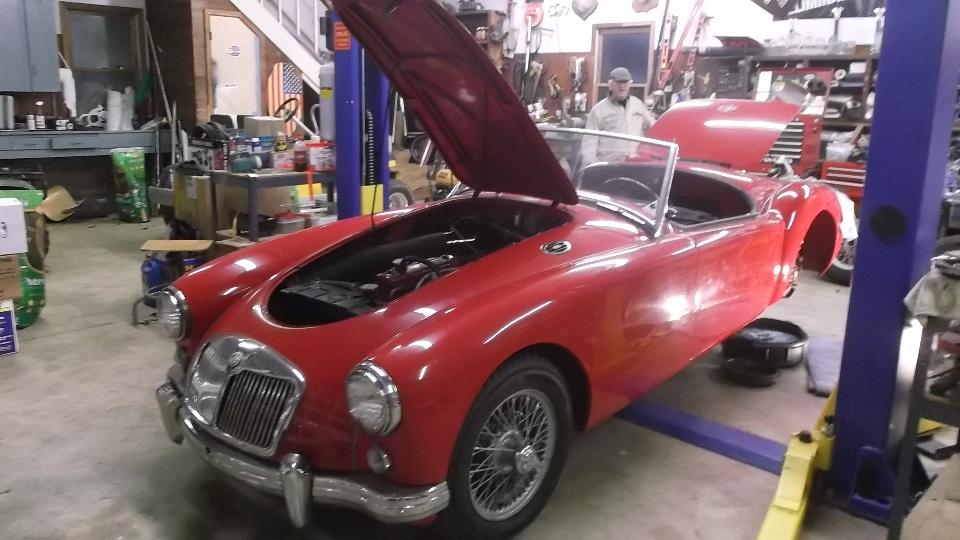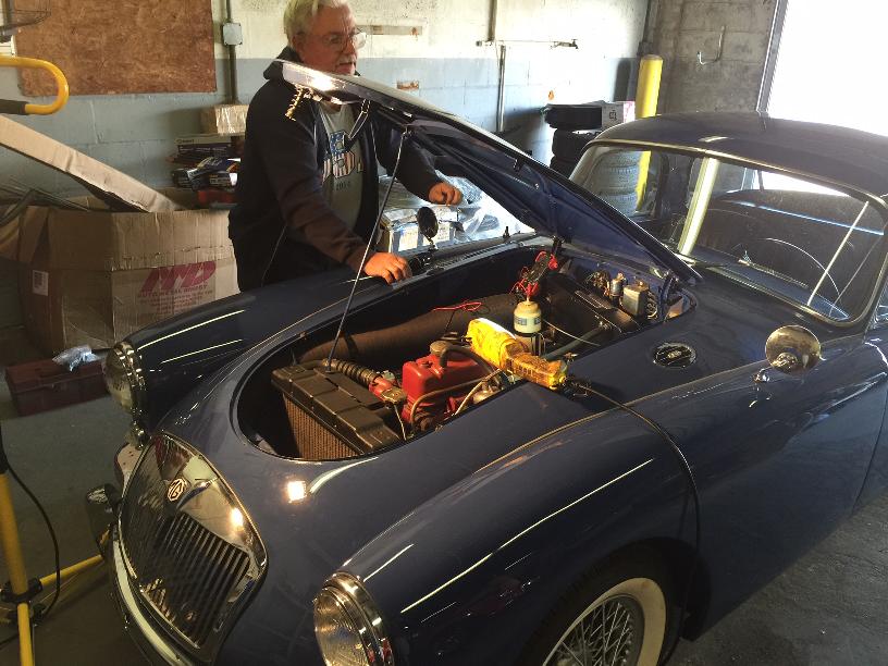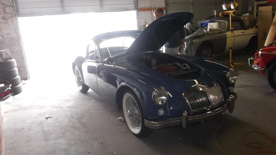 The MGA Coupe needed a carburetor adjustment, and the brakes are very stiff going down, likely needing all of the hoses replaced. Also low oil pressure at idle with hot oil, likely needing all new crankshaft bearings (and oil pump inspection). An MGA roadster is in very good condition needing not much.