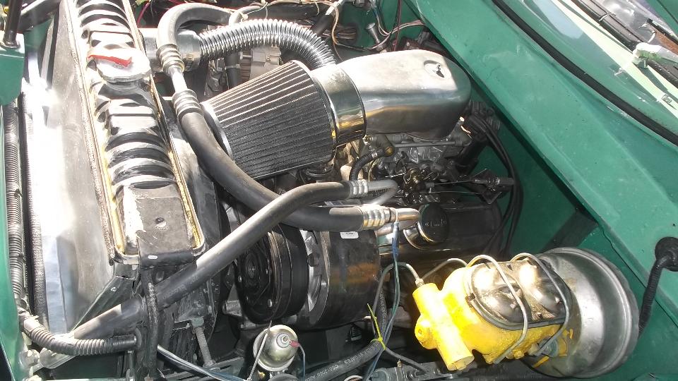 The trip back to Blythewood was a bit longer and even more delightful. One car that particularly struck my fancy was this somewhat "upgraded" MG ZB Magnette. It carried a GM V6 engine (4.1-liter I think) with 4-bbl carburetor, automatic transmission, alternator, air conditioning, TR6 wheels shod with 205-70-15 tires, front disc brakes with 4-pot Wildwood calipers, brake power booster and dual line master cylinder. The little rectangular part below the master cylinder is a proportioning valve.