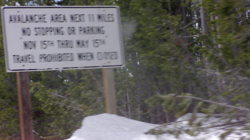 The final kicker was a sign reading, "Avalanche area next 11 miles. No stopping or parking. Nov 15th thru May 15th Travel prohibited when closed". Hey, yesterday and last night were May 15th. I suppose we lucked out if the road was just being opened after a winter shut down.
