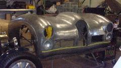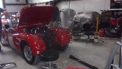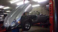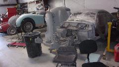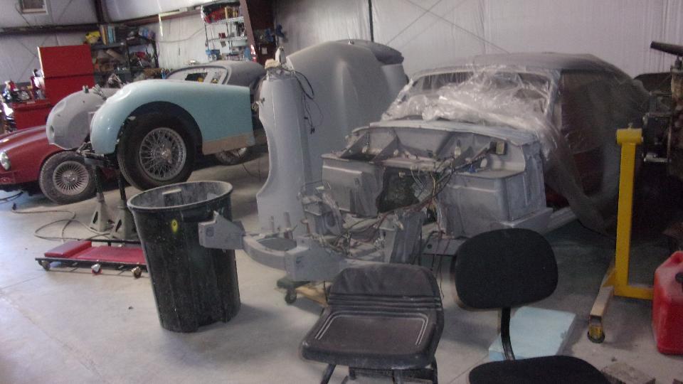 There was a nice MGA in the reassembly stage of full restoration, going well. One of the biggest smiles came from restoration with a new wood body buck in the wood shop and the new metal nose for a car model I can't remember, but it was something rare and expensive.