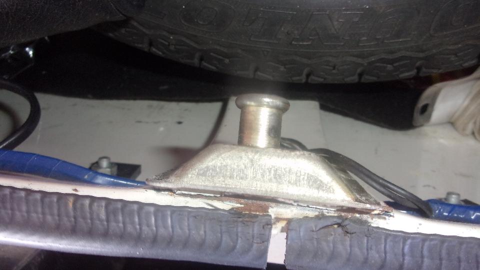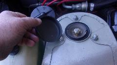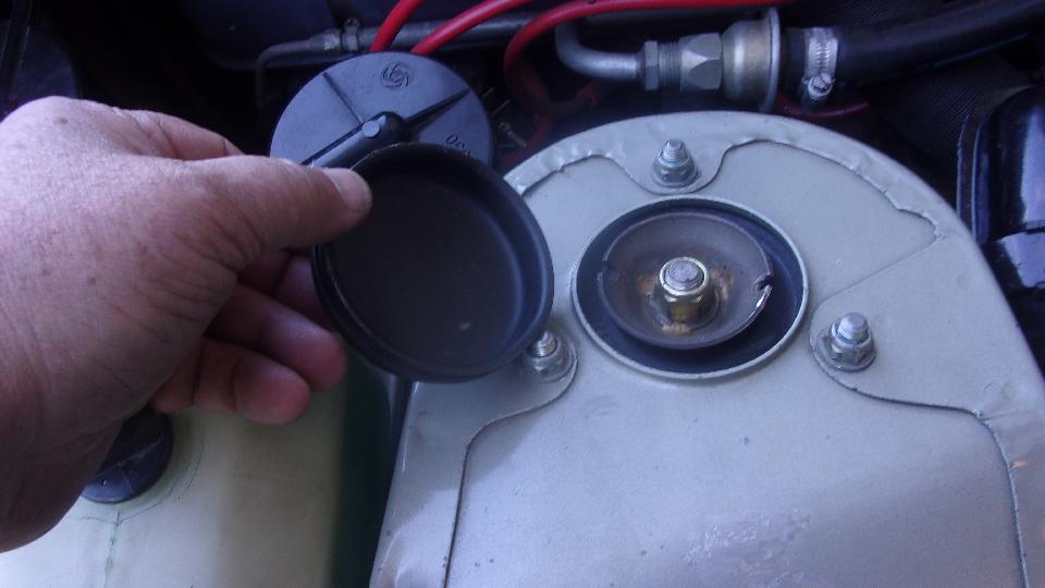 Then I had time to autopsy the heater valve that had failed a few weeks ago. Easy enough, grab a hand grinder, grind off a rivet head, punch out the rivet, rotate the valve head a bit for release, pull off the top and extract the failed rubber diaphragm. This is the one that failed in 10 months, after the previous one failed in 14 months, two failures in two years is not good. This is the result of soaking the rubber part in ethylene-glycol and water which is what it is supposed to do in real life, but this one turned to chewing gum in less than a year. In years past these things used to last about 10 years. Need to send the report and pictures to Moss Motors.