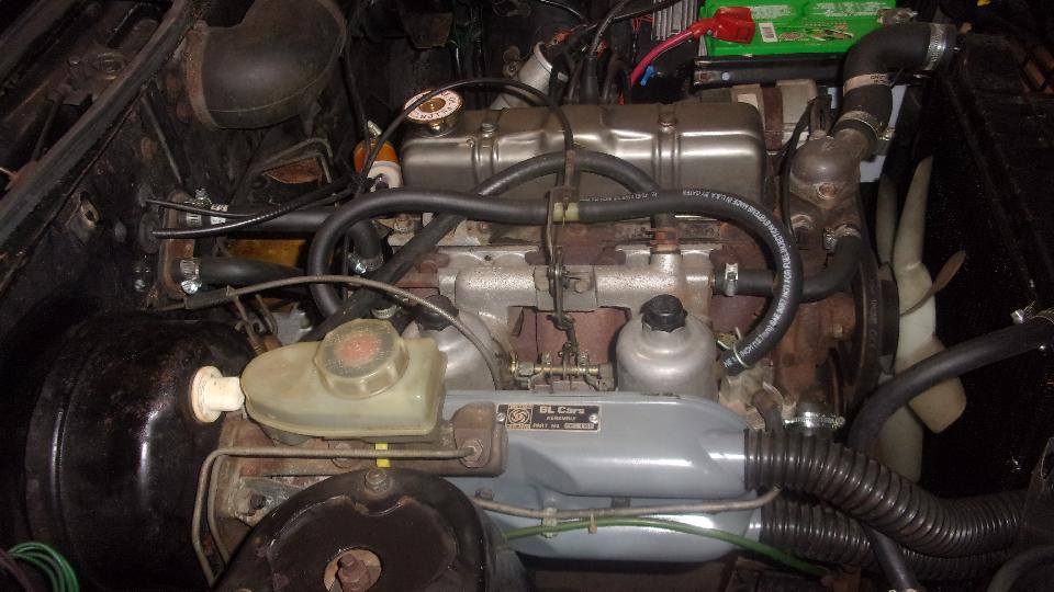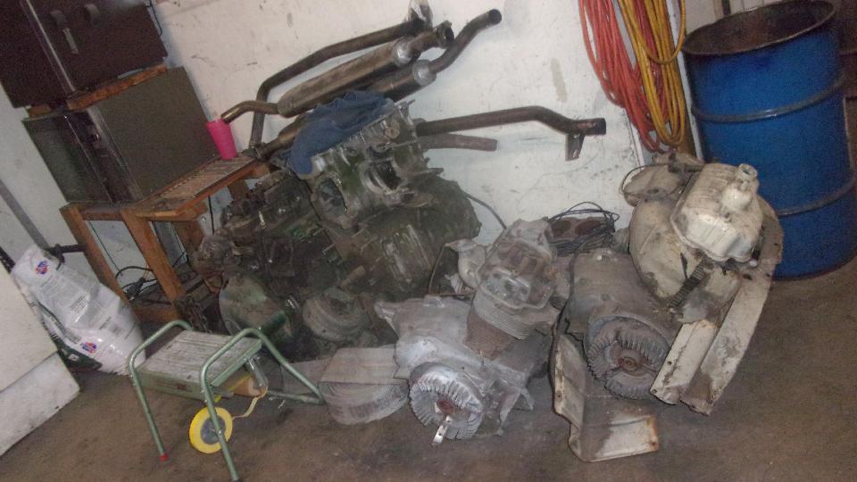 Then I spotted some interesting parts in the corner. On the left a 1275 engine with torque converter