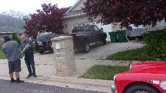 Another 50 miles on we stopped to visit Rick Busche in Layton, UT. He has a 1967 MGB (currently in a storage locker, and a 1973 Midget (didn't see that one either). He was passing a couple of chrome plated Harley Davidson mufflers to another friend as we were arriving. Then we got to sit and chat for a few hours, time flies, and around 7-pm we were off to find another WiFi spot and dinner.
