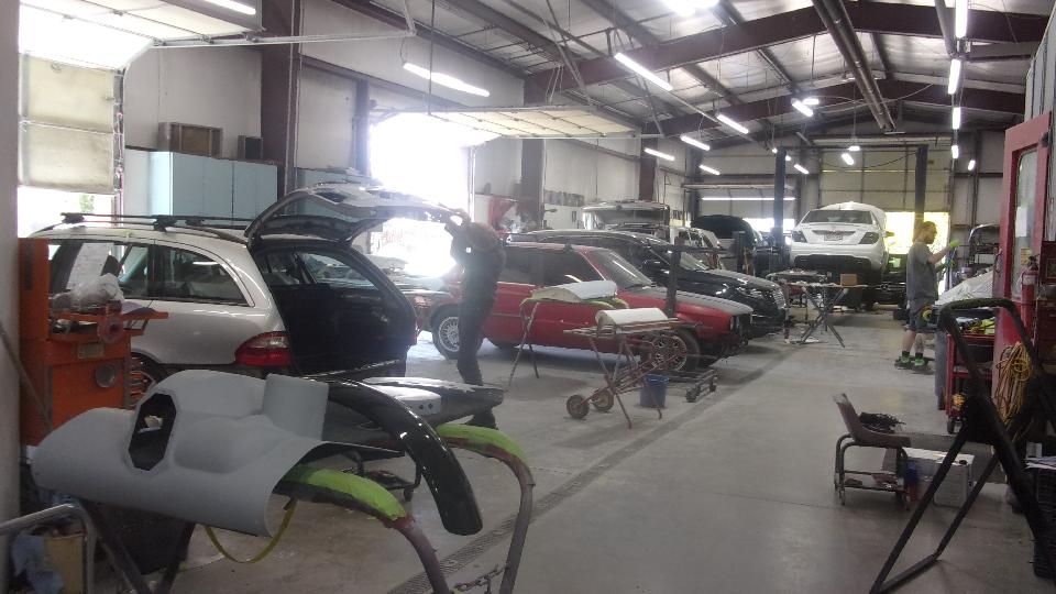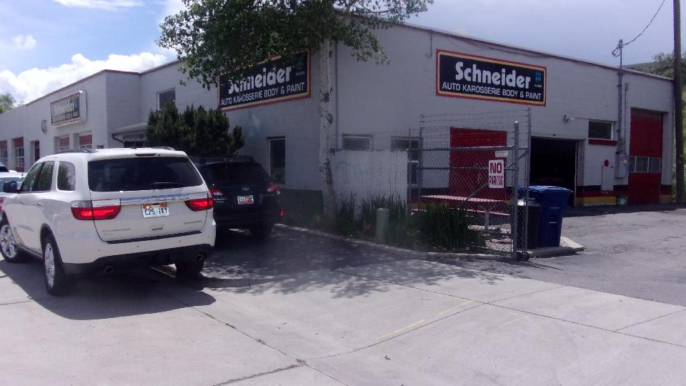 We then found Schneider Auto Karosserie, Inc in Salt Lake City. That's a mouth full, but karosserie is German for "bodywork". They specialize in German cars, but can and do service almost anything "interesting" that may come along, including vintage British cars. The Shelby GT500 out front was resurrected from a rusting hulk.