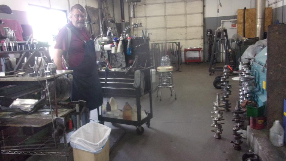Next up was Ogden Chrome in Odgen, UT. Fifty years in service, another younger generation crew, sat hello to Jose. This is a shop noted for top notch decorative automotive chrome. That's Corvette show chrome on the table, including luggage rack parts.