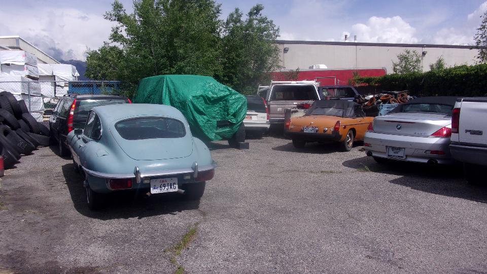 The parent business here is Greg Gear Head, classic European cars and parts. They are buy/sell and parts, not primarily British cars, and not interested in working on British cars, so I won't put them on my Shops list. But they did have some interesting cars on hand, like Jaguar and Lotus in a few different colors. And there was the Land Rover Defender with the Corvette engine, just for kicks.