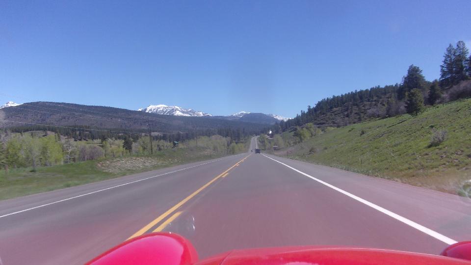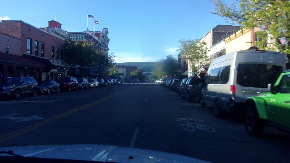 There are some advantages to living on a mountain top, like the herd of deer in the back yard. The driveway was a bit of a challenge, which we hit near full throttle in 1st gear on the way up (glad it was paved not gravel). The photo on the way down is not quite as impressive as the view from below looking up, including a couple of tight hair pin turns. In the evening we ambled into Durango for dinner in the town with heritage as a smelting town from the gold rush with steam trains in the late 1800's. Today they are running one of the original steam trains daily as a tourist service.