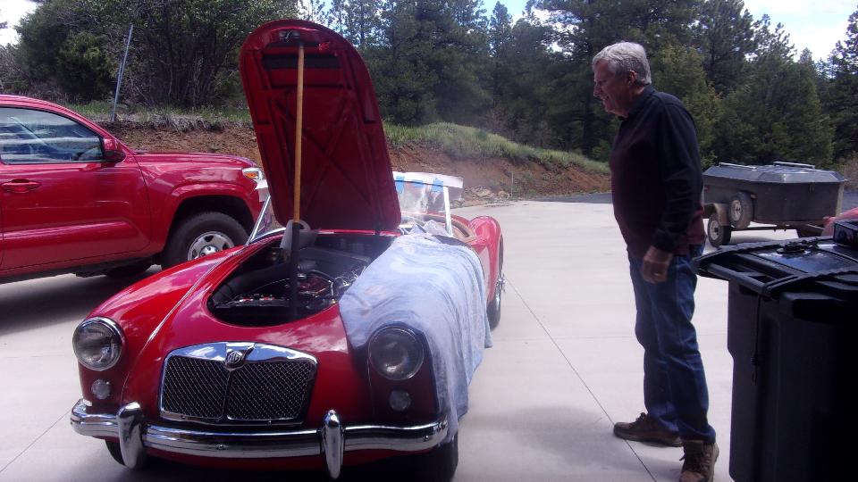 Hour and a half later we stopped to visit Hans Ryser in Durango, CO. We have been after him for four years, missed him twice on the fly in 2015 and 2017. This time all we had to do was hold off for one extra day until he returned from a business trip. He has a nicely restored MGA that had some knocking problem with the rebuilt engine a few years ago. Sorry I wasn't there at the time to help diagnose it. The ultimate solution was an MGB 1800 engine with some minor improvements, like high compression pistons for the high altitude here.